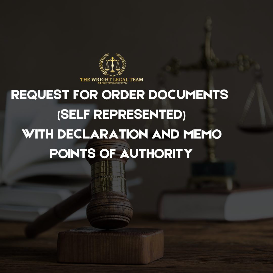 Our à la carte ghostwriting service for Request for Order documents (Self-Represented) is strictly limited to document preparation. This service does not include legal advice, consultations, or representation. For personalized legal guidance or assistance, please schedule a consultation with our team or consult a licensed attorney.